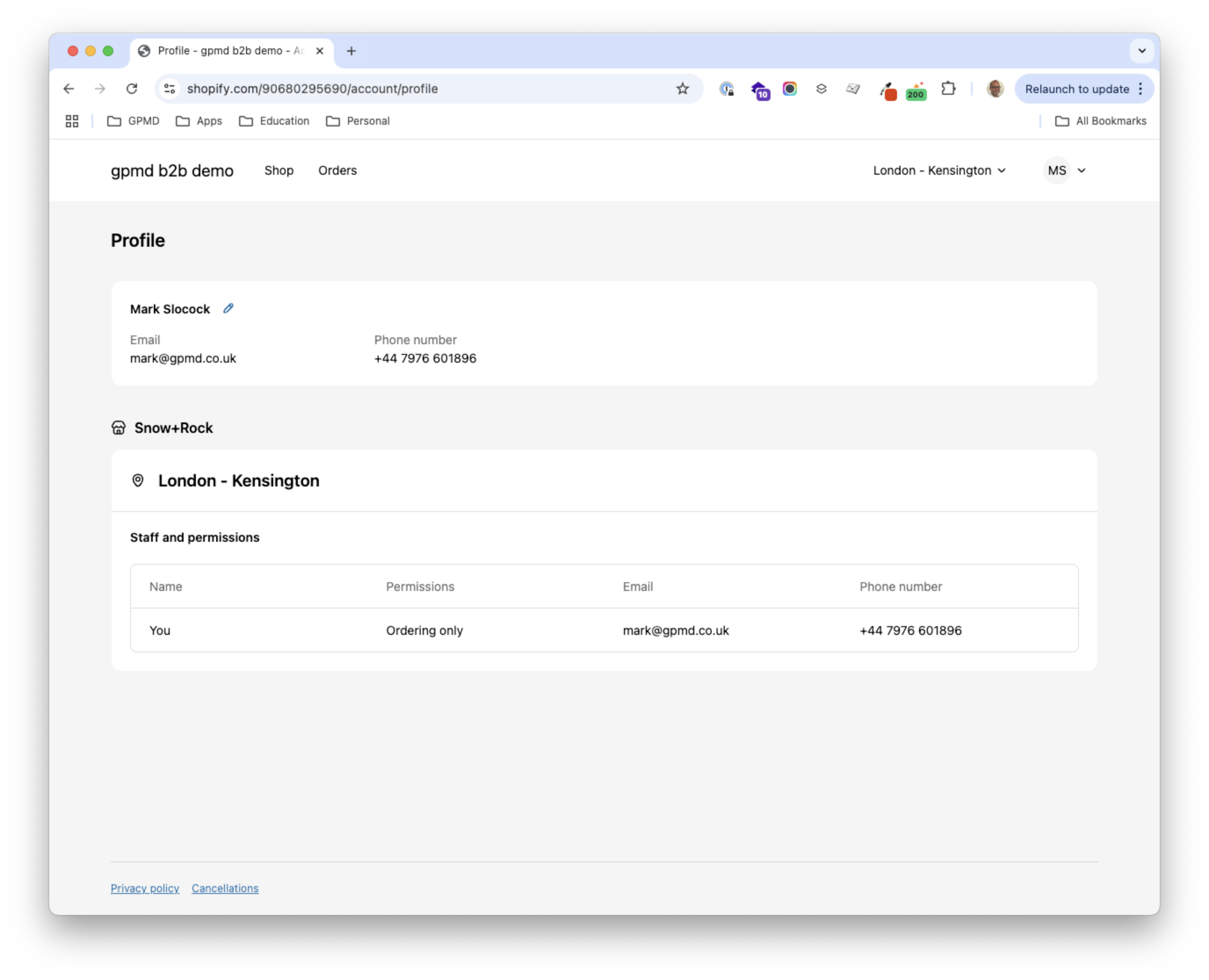 You can give your Sales Representatives full or limited access to each company setup within your Shopify B2B store. You can assign any Staff member in your Shopify account to manage B2B areas of your Shopify admin and individual Companies and Company Locations.